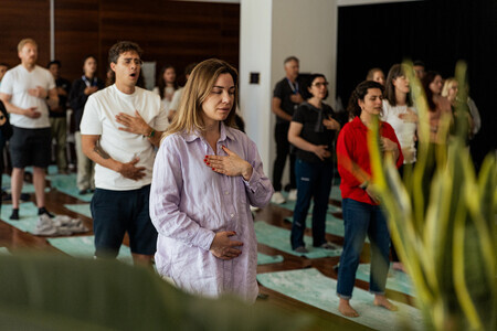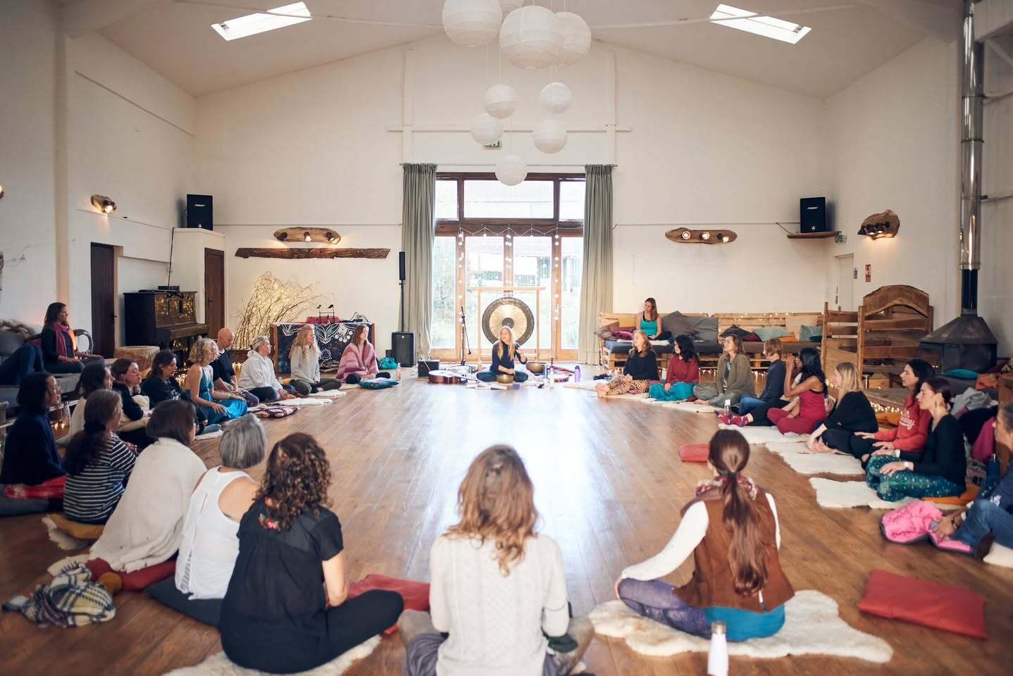 From this embodied state, we explore somatic voice and sound practices as tools for self-expression, emotional integration and conscious presence. This is a very tender part of the workshop, where participants often move through blockages relating to their singing voices, as we experience a vocal sonic spa, that flows into mantra and then song.