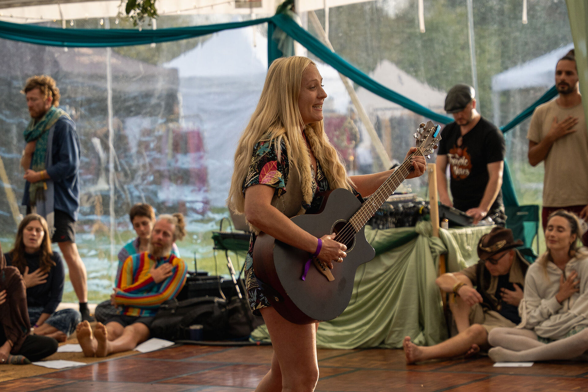 "Tallulah facilitated a space full of vulnerability and magic. Through gentle invitation and repetition, she helped us to share our voices, to listen to our bodies, and to hold space with one another. Not to mention her talent as a musician and sound healer. I felt in safe hands throughout her workshops." Matt - ecstatic dance retreat Embercombe