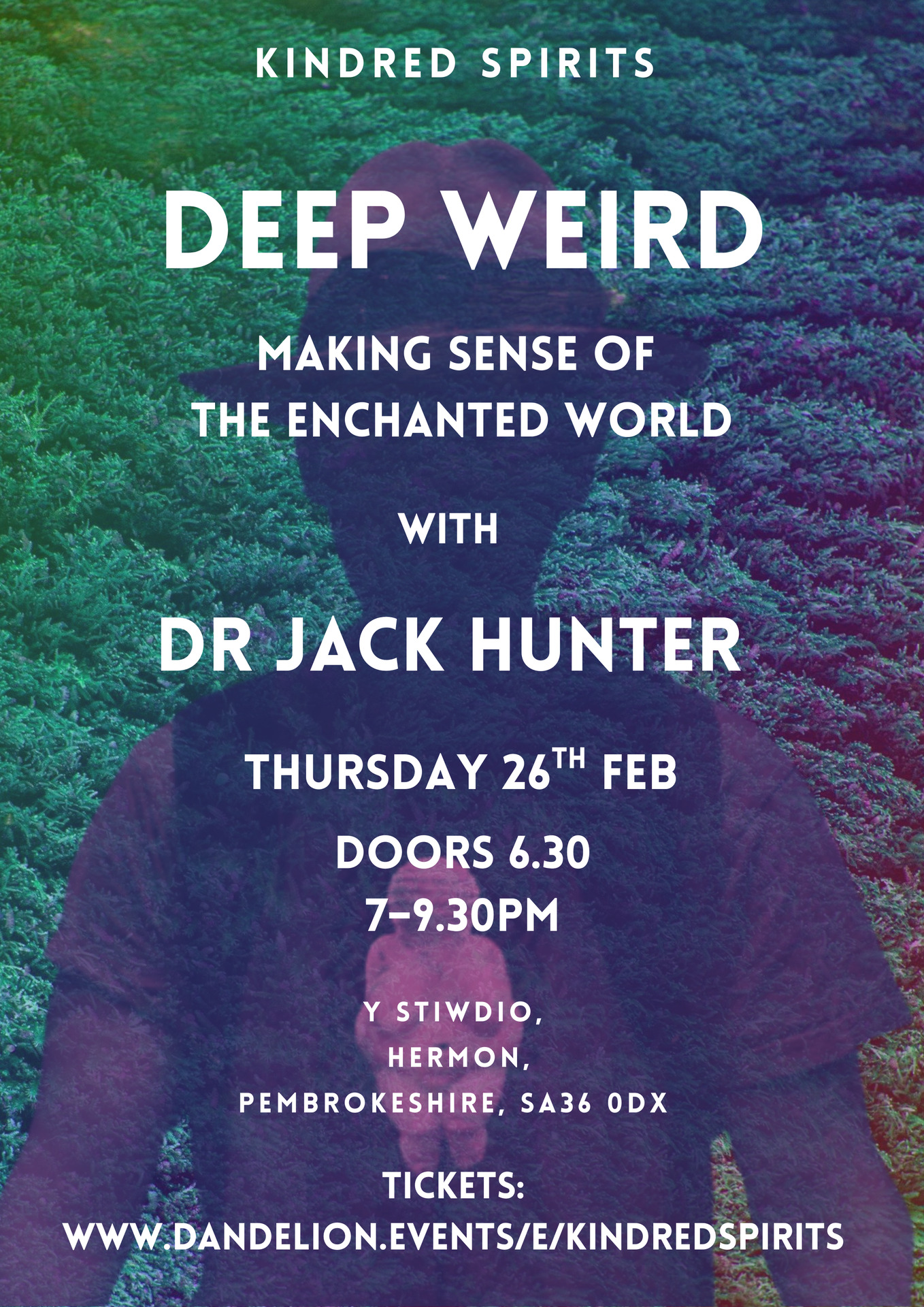 In his talk DEEP WEIRD, Dr Jack Hunter will focus on high strangeness; those bizarre, inexplicable events, like modern fairy sightings, goblins, spirit entities and encounters with the little people and how these extraordinary experiences are often overlooked, or dumbed-down. With an academic mind and heart in folk lore Jack will take us on a journey into the realms of the Fae and the Underworld, and offers insights into how we can incorporate and make sense of this enchanted world.