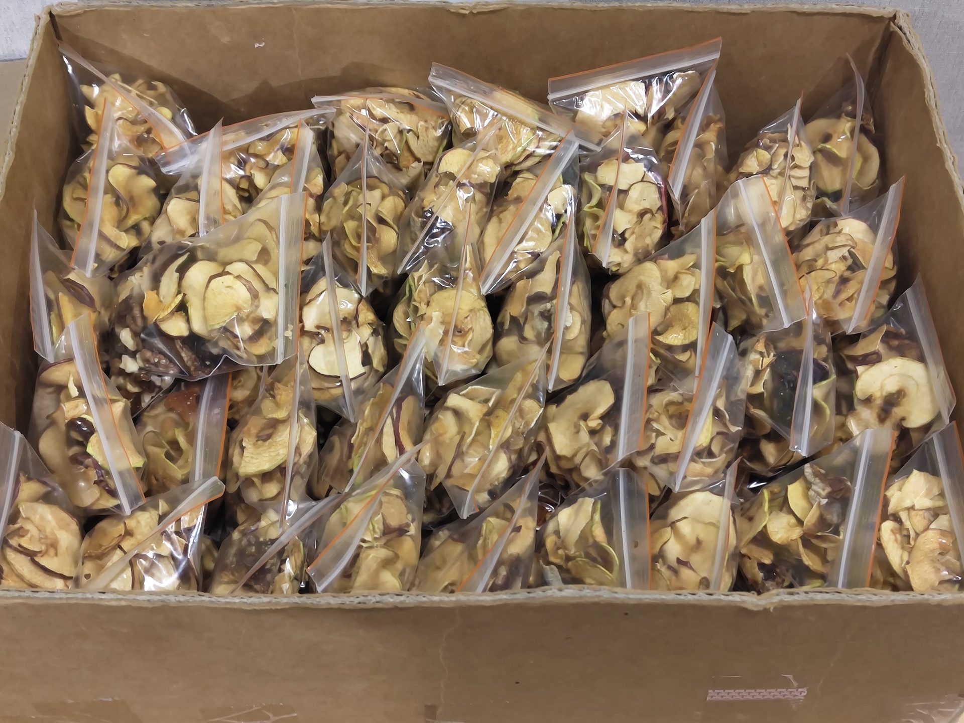Working on the kitchen production line, bagging up a dried meal